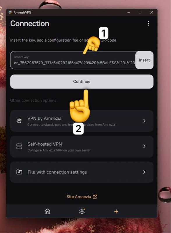 Пошаговая инструкция по установке клиента Amnezia и подключению по ключу.